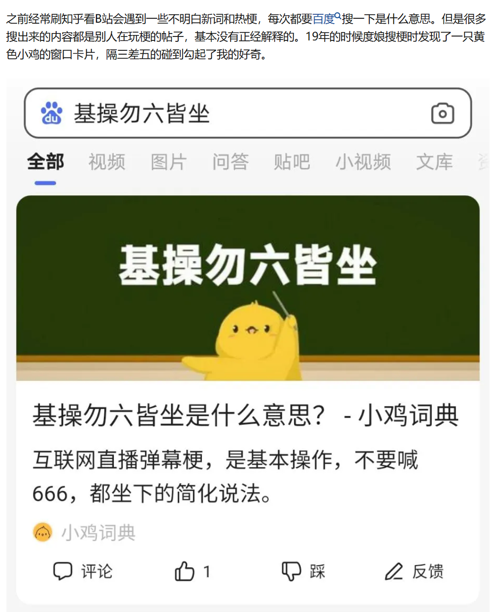 2021年5月份,小鸡词典员工发现微博国际版上线了一个新板块,叫有梗百科,员工发现这个板块上很多内容,都跟小鸡词典的内容相似。