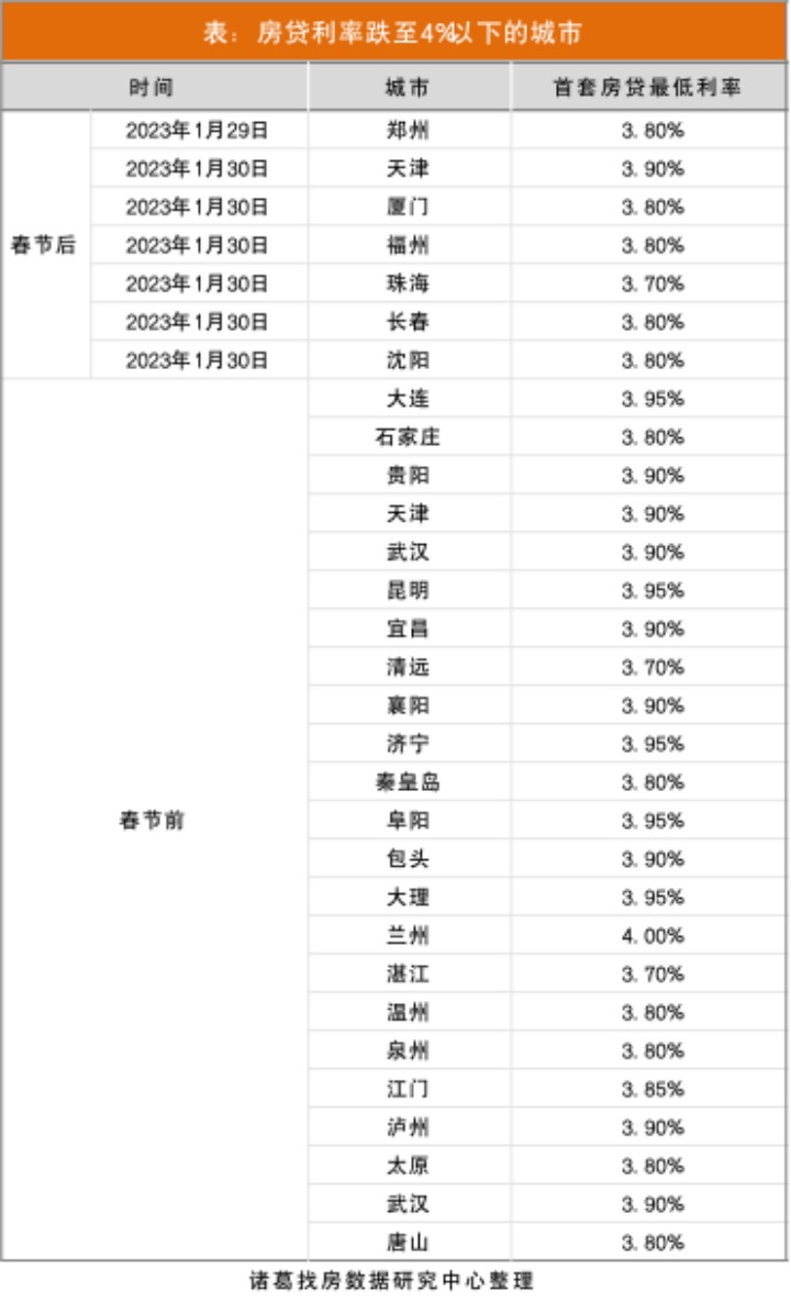 春节假期后,郑州、天津、厦门、福州、珠海、长春、沈阳等城市相继下调了首套房贷款利率下限。据诸葛找房研究中心数据,截至目前,已经有30城下调首套房贷款利率下限至“3字头”,最低利率为3.7%。