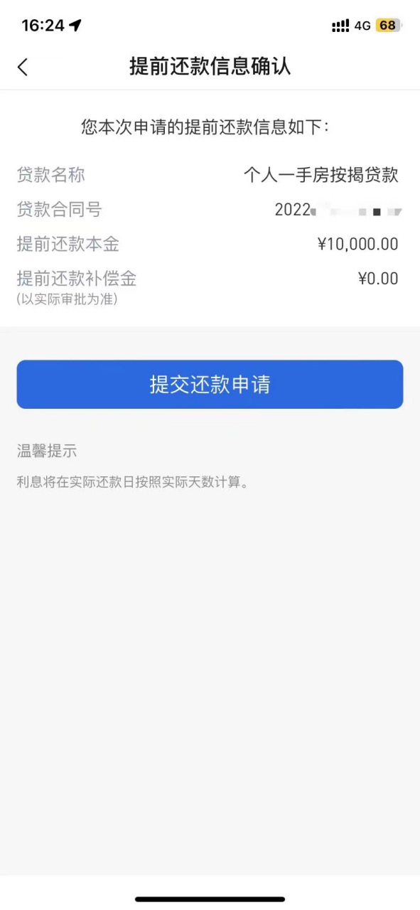 杨舒彤透露,上述银行提前还款或收取违约金,她在线上操作了两次,都提示可能要交违约金,不过可以有机会申请减免。