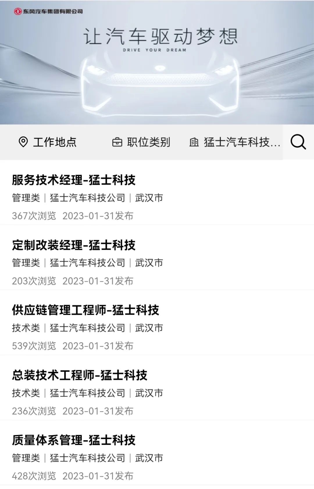 近日,东风汽车集团(以下简称:东风汽车)对外广发“招贤令”,为旗下的“猛士汽车”更新了上百个需求岗位,从岗位类型看,除了前期的技术研发、生产管理,还有面向市场的品牌运营和营销推广等岗位。