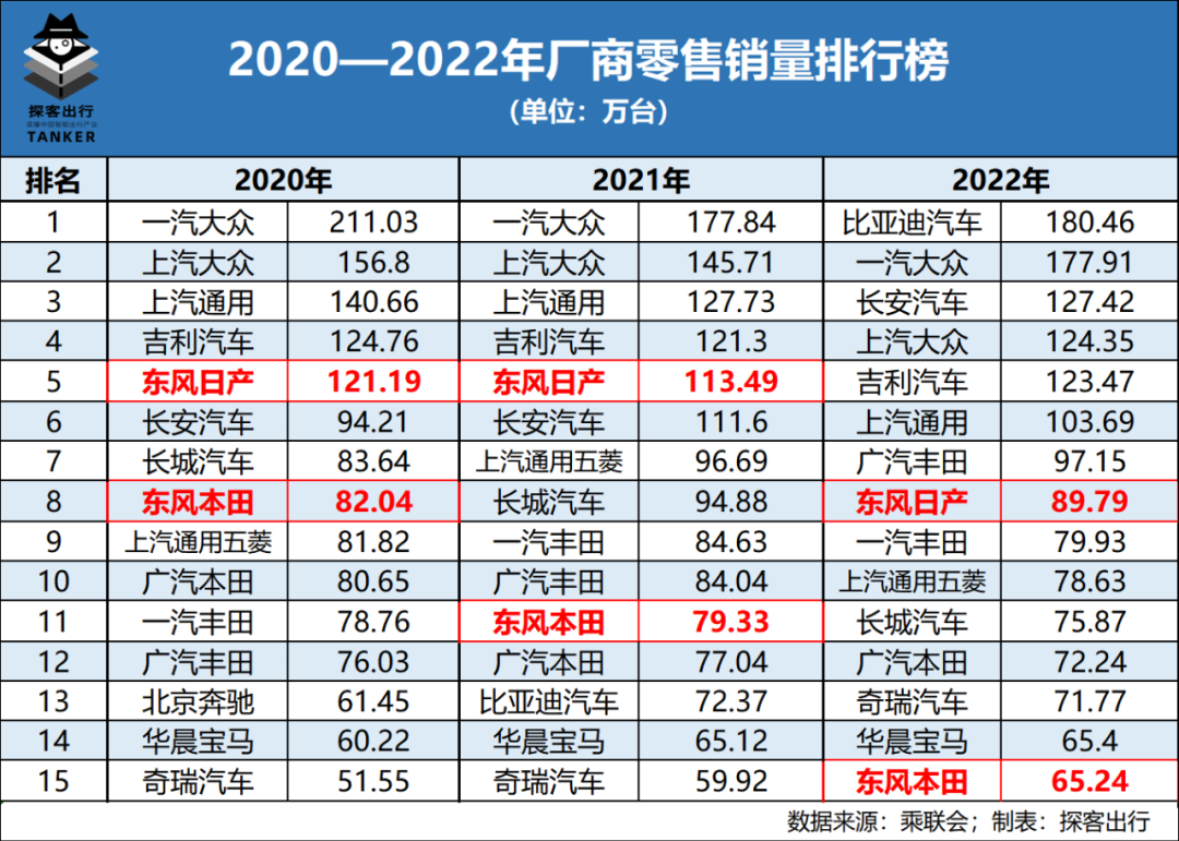 「探客出行」从乘联会数据发现,在国内乘用车市场逐步回暖时,东风旗下的东风日产和东风本田则出现了连续两年的大跌。