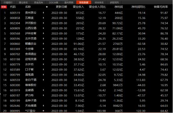 从2022年第三季度财报来看,20家白酒上市公司中,19家都实现了净利润的正增长。茅台、五粮液、洋河、山西汾酒、泸州老窖稳居前五,即使为百亿营收规模下,仍旧保持着营收净利的双增长。