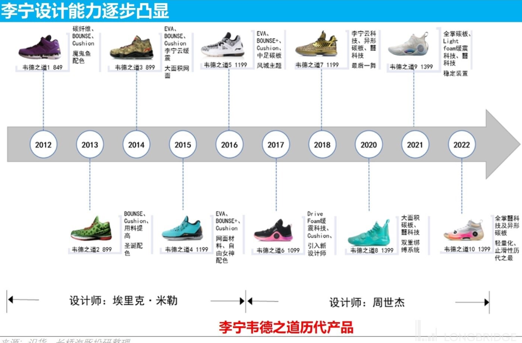 后期 “韦德之道” 更替设计师,在设计上融合了更多较为大胆的元素与配色,叠加李宁的 “䨻科技”,直接将该系列产品的价格推升至 1500 元的价格带。