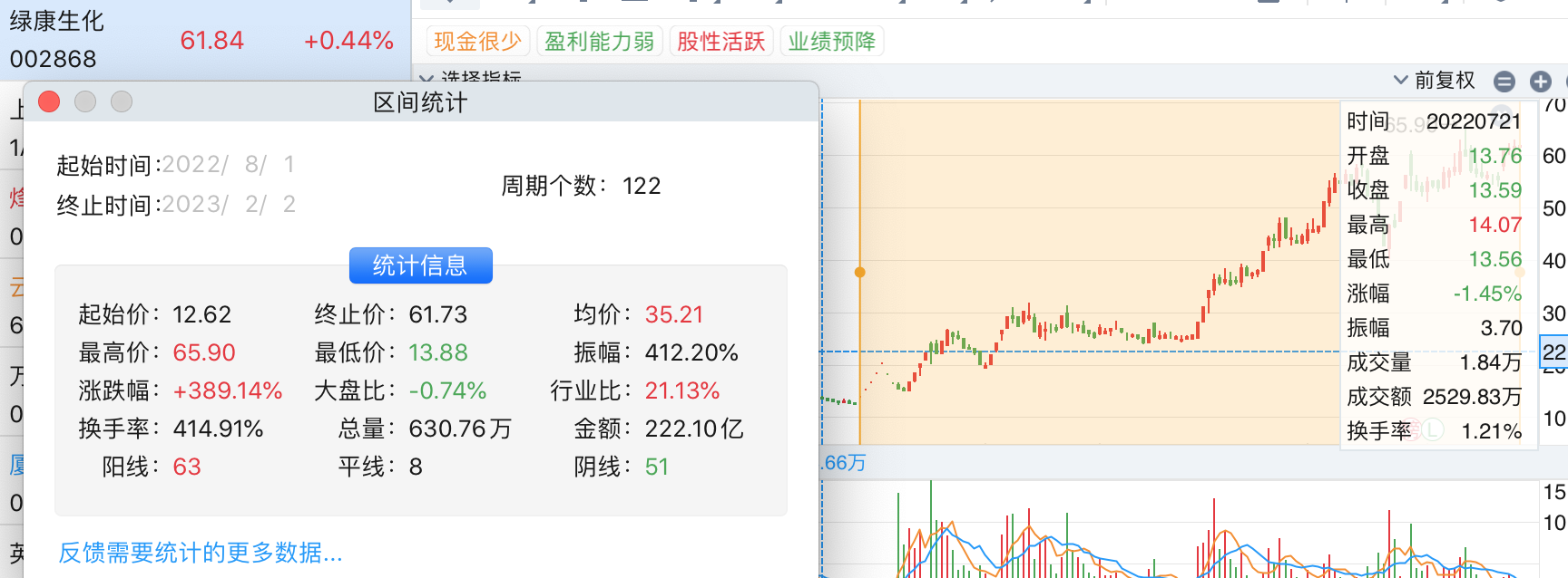 在2022年8月1日绿康生化发布公告起至今,绿康生化股价累计涨幅已超380%。