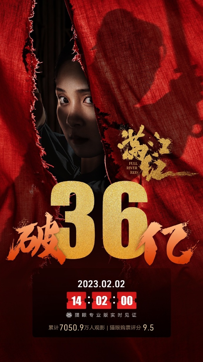 据@猫眼专业版,截至2月2日下午02时02分,电影《满江红》上映12天,总票房破36亿。