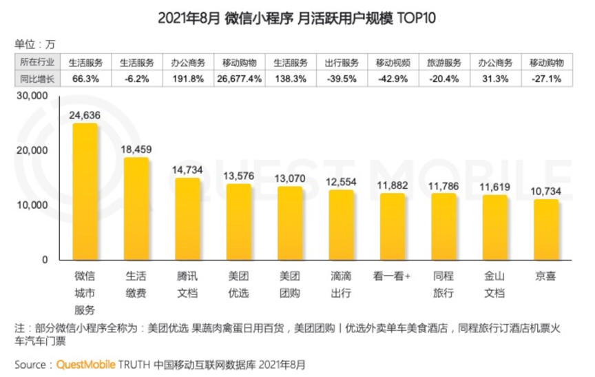 微信小程序月活规模情况,图/QuestMobile