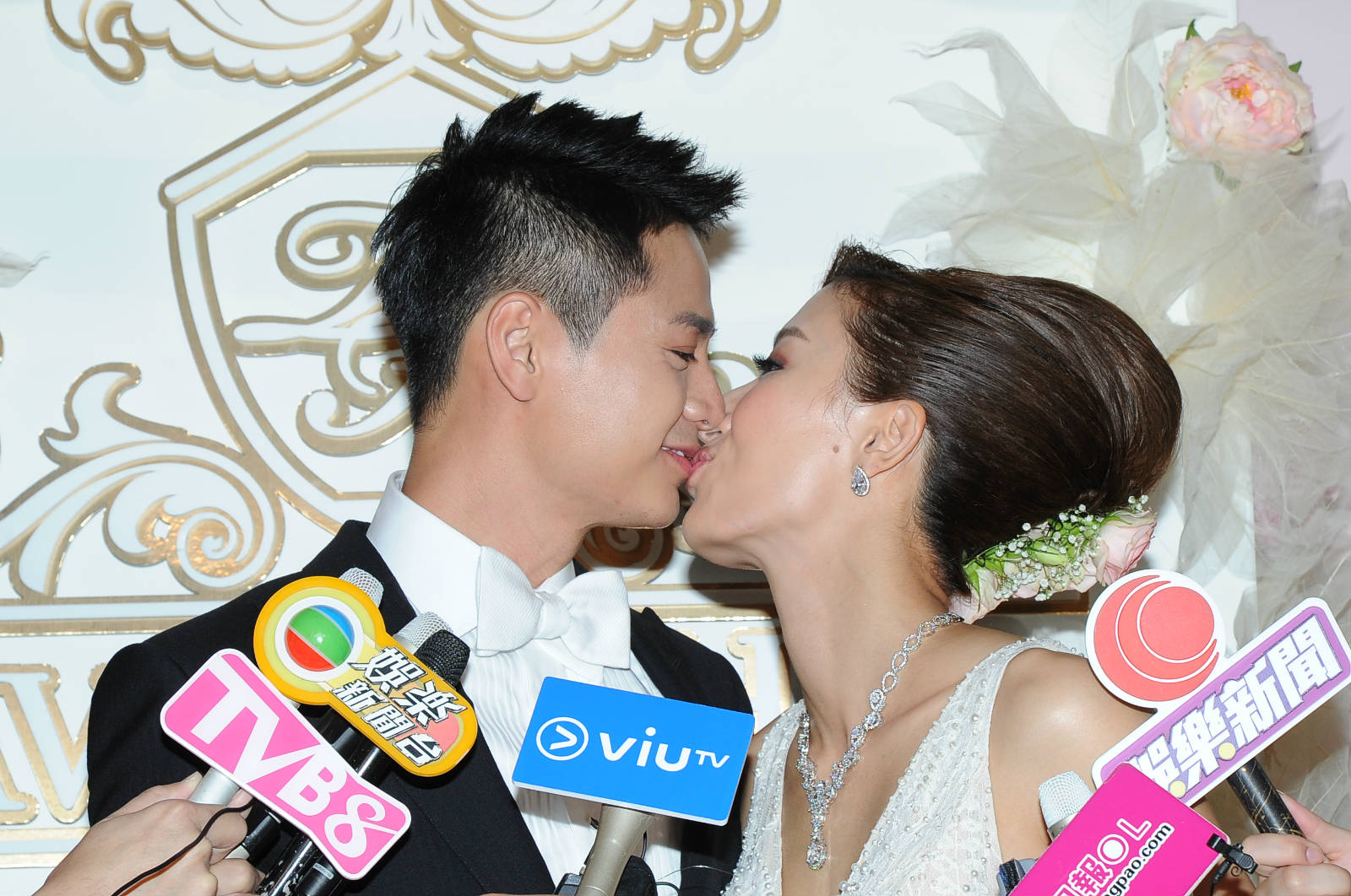 接受媒体采访时,一对新人大秀恩爱,罗仲谦更当众表演“啄木鸟”式接吻,连吻杨怡6次,再应要求与太太情深接吻达10秒之久,洋溢着甜蜜幸福。
