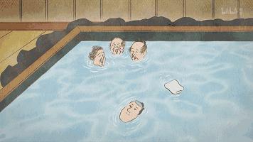于是矶兵卫抱着期待又羞射的心情去泡澡。