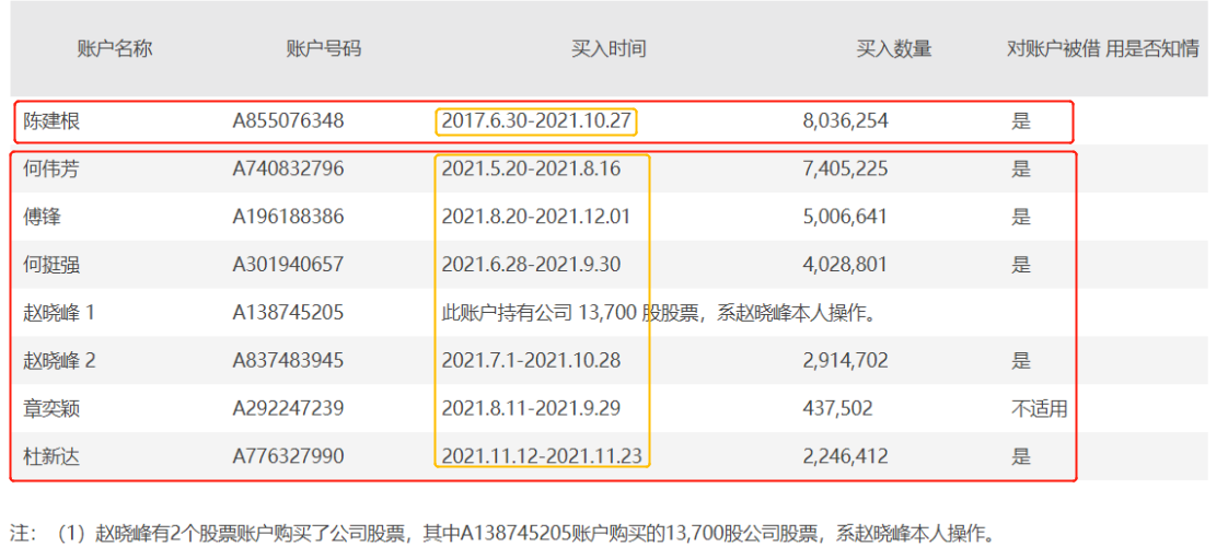 章奕颖操控7个账户,其集中买入的时间集中在2021年5月20日至当年12月1日,这一时期合计买入数量约2204万股。