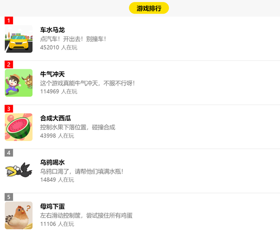 值得注意是,虽然《合成大西瓜》的走红是一个随机事件,但微伞游戏却抓住了事件背后的偶然变量。小游戏话题度的集中爆发,可以在极短时间内形成强大的裂变链条,从而获得巨大的流量收益,而如何让其实现集中爆发,是一个需要思考的难题。
