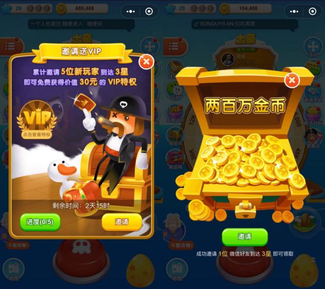 《海盗来了》依靠无处不在的分享诱导设计,和触发概率极高的分享奖励,以及好友间的竞争攀比,迅速地形成了病毒式传播,甚至挤下了人气坚挺的《跳一跳》,成为了当时小程序榜单中的第一,月流水破亿,巅峰DAU达到4000万,成长指数远超其他小游戏。