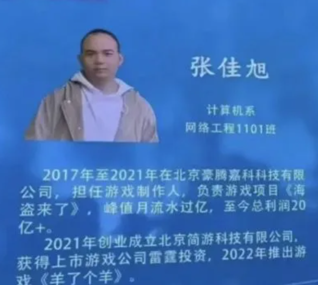 张佳旭母校甚至在最近的招生中将其个人履历作为展牌宣传