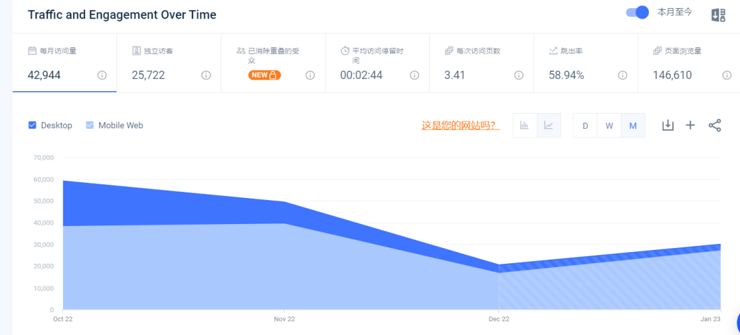 以2022年4月上线的内衣品牌Luvlette独立站为例,在初期访问量暴增后,近期下滑趋势明显。