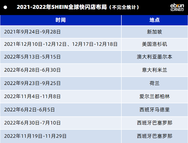 美国、欧洲和中东正是 SHEIN目前主要目标市场。这些快闪店一般持续3-4天,并结合当地消费习惯开展营销活动。