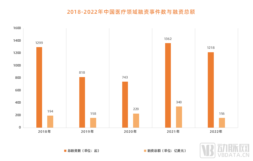 图1.2018-2022年中国医疗领域融资事件数与融资总额