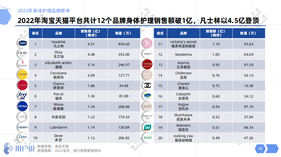 近日,用户说了发布的《2023年线上身体护理(身体乳·身体油·身体霜)消费市场洞察》显示,2021年11月-2022年11月的近一年中,仅阿里平台身体护理类目的成交额便高达72.69亿元。