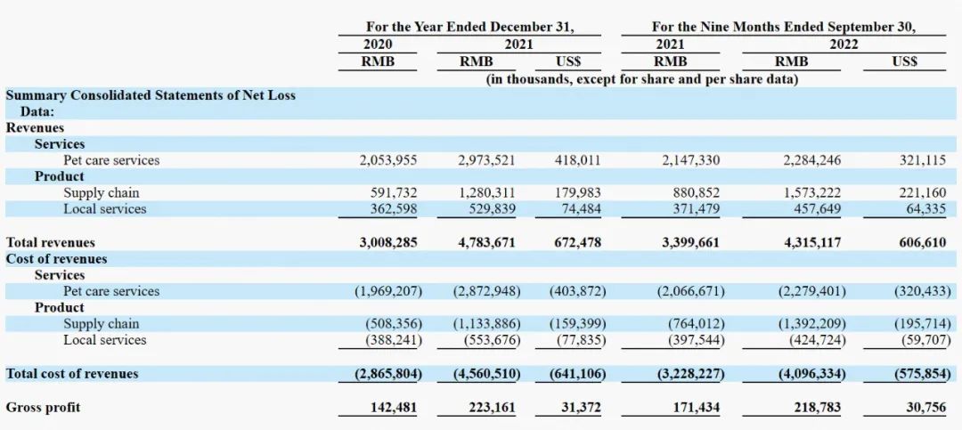 庞大的门店数,意味着对宠物用品供应链的深度渗透。新瑞鹏宣称自己构建起的供应链网络已经为全国45000多家宠物店、宠物医院和诊所提供服务。2022年前三季度,供应链业务为其带来了15.7亿元营收,超过2021年全年,增速亮眼。