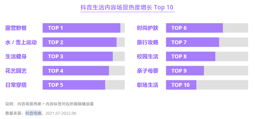 (抖音生活内容场景热度增长TOP10 图源:抖音电商)