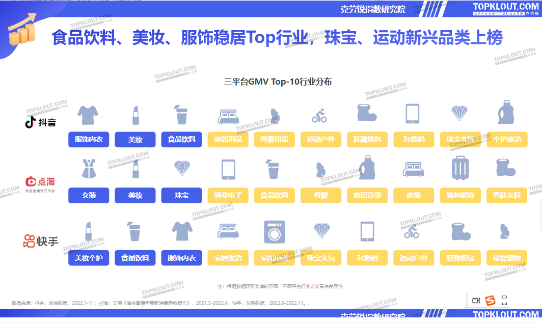 (抖音2022年1-11月GMV分品类排行 图源:克劳锐指数研究院)