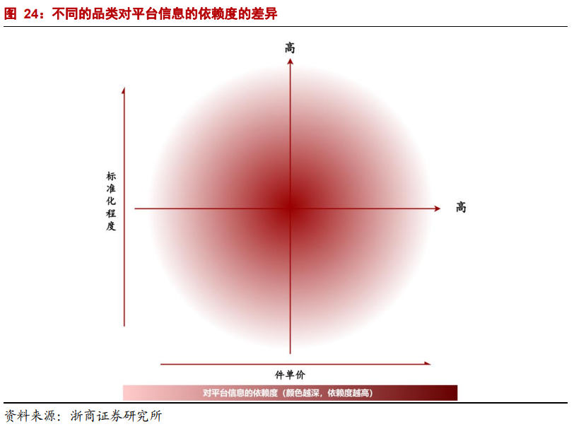 (不同品类对平台信息的依赖度差异 图源:浙商证券研究所)