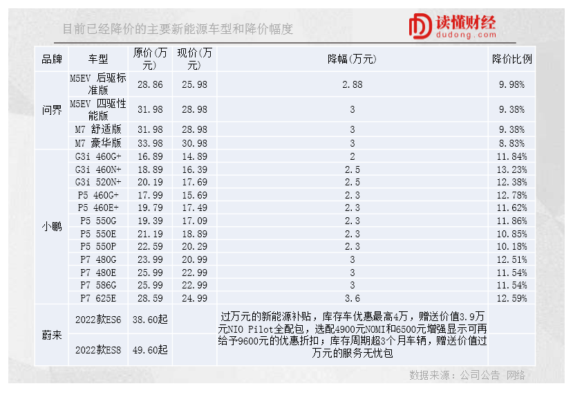 1,特斯拉Model 3和Model Y降价3-4万后,订单速度几乎是生产速度的两倍。在特斯拉带动下,问界、小鹏也针对老车型或销售不佳的车型进行了一定降价,降价幅度在8%-14%之间。蔚来此次降价同样针对老款库存车型,但综合降幅更高,在20%-25%左右。