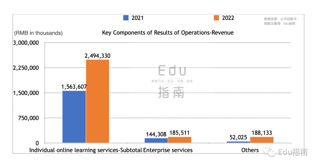 招股书称,2022财年企业服务增长是因为其个人在线学习服务的增长和学习者人数的增加,以及面向企业营销服务的增长。