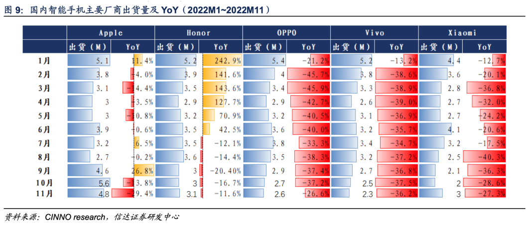 更残酷的是,2022年,中国智能手机市场出货量再次回落到3亿以下市场大盘: