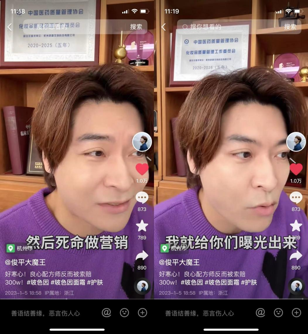 随后,俊平大魔王则针对为了玲飞的视频评论道:“严格来讲,国货品牌只要声称自己添加了玻色因都是虚假宣传,因为玻色因这个商标本就属于欧莱雅集团。”