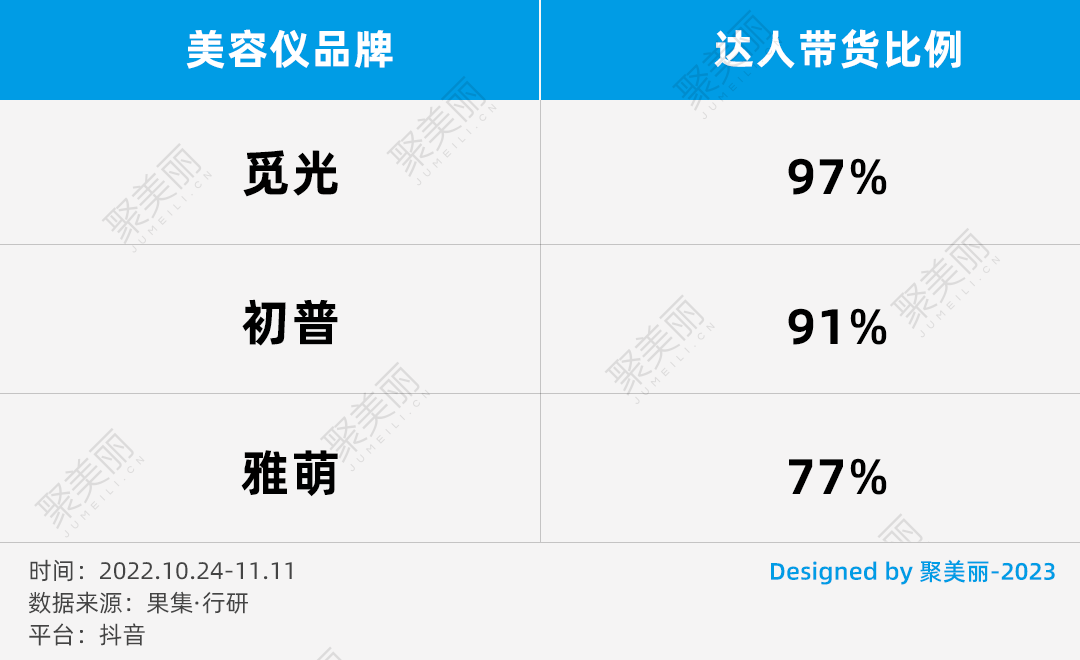在此期间,觅光、雅萌、初普的销售额构成,大部分来源于与直播带货达人的合作。而腰尾部的美妆及种草达人,成为美容仪品牌主要合作对象。