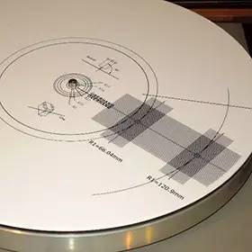 唱头校准器大多是由塑胶或是纸板制成,上面都会印有刻度与参考切线,方便使用者能准确地校正唱头。简单来说,只要将模板越过转轴放在唱盘上,调整唱头直到针杆和基准线平行对齐即可。