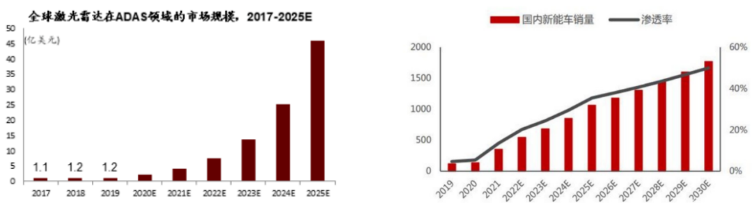 根据中金的报告,2022年11月激光雷达市场渗透率仅为1.5%。如果不考虑全部辅助驾驶车型采用激光雷达的可能性,按照IDC发布的2022上半年L2级辅助驾驶的渗透率为26.6%来估算,激光雷达对标实现当前L2级的渗透率,就存在着超过17倍的增长空间。