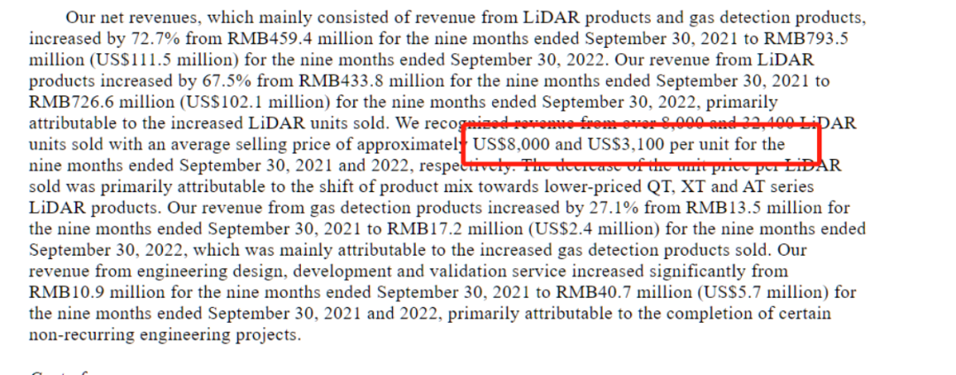 对比2021年-2022年前三季度的出货量及成本,按照招股书的各项成本/出货数量计算,单个雷达成本下降至原来的51%,同时人工费用的平均值也在快速削减。成本控制有了很大进展,但这还远追不上出货价格从8100下降到3000的速度。