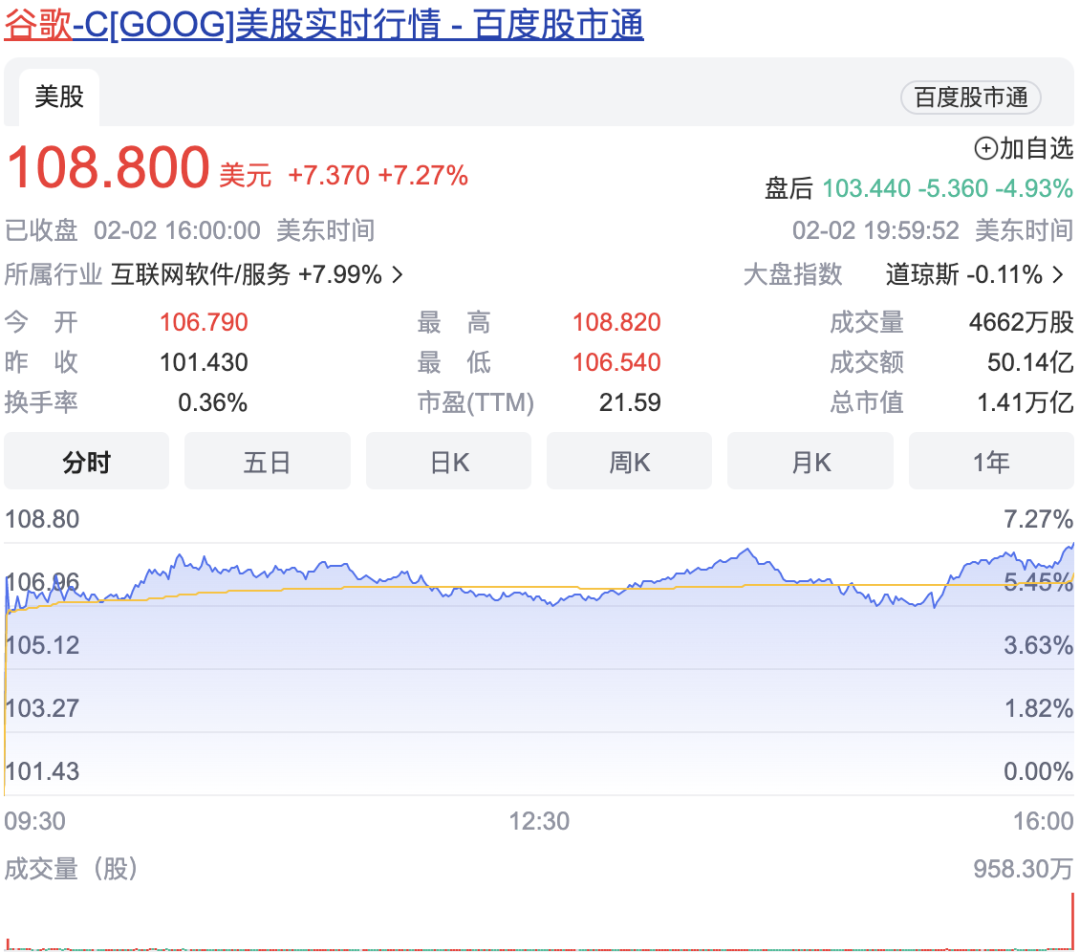 谷歌股价变化情况(图源:百度股市通)