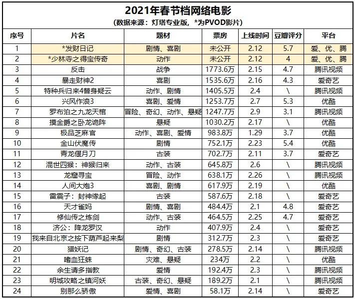 而在网络电影市场,来到春节档的第三年,有了更丰富排播运营经验的头部平台也开始轻车熟路了起来。