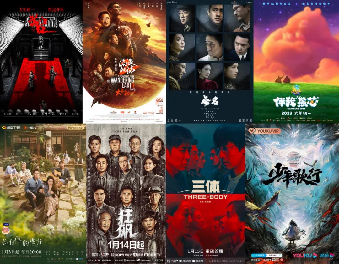 低迷已久的院线电影市场回暖了,而且是强势反弹,几部春节档电影都贡献了不错的份额和走势;剧集市场,主要视频平台在短短一个月内都拿出了具有破圈影响力的作品,爱奇艺的《狂飙》成为现象级爆款,腾讯视频的《三体》、优酷的《少年歌行》和芒果TV的《去有风的地方》也表现亮眼。