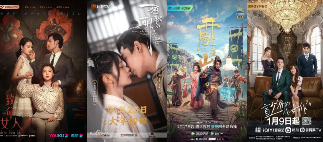 而在短剧领域,优酷的《致命女人》、芒果TV的《王府软萌小刺客》、腾讯视频的《开局一座山》都成为行业热榜常客,去年底入局的爱奇艺也有热度排行不错的《盲少爷的小女仆》,猫眼热度值都能达到7000上下。