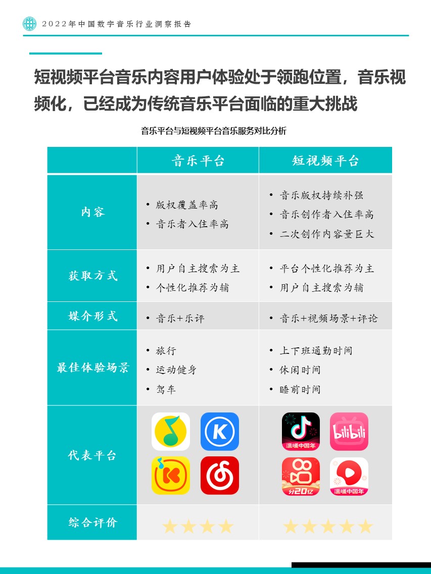 短视频音乐服务崛起:以抖音为代表的短视频平台拥有优秀的音乐内容能力、音乐社区生态、音乐社交生态及音乐商业变现能力,深受音乐用户和音乐人的青睐,版权已经不再是阻碍用户跨媒介跨平台流动的阻力,用户大规模跨音乐媒介迁移重构正在进行,以抖音为代表的短视频平台成为了用户聚集的新中心平台,大量音乐用户从传统数字音乐平台向短视频平台迁移聚合。