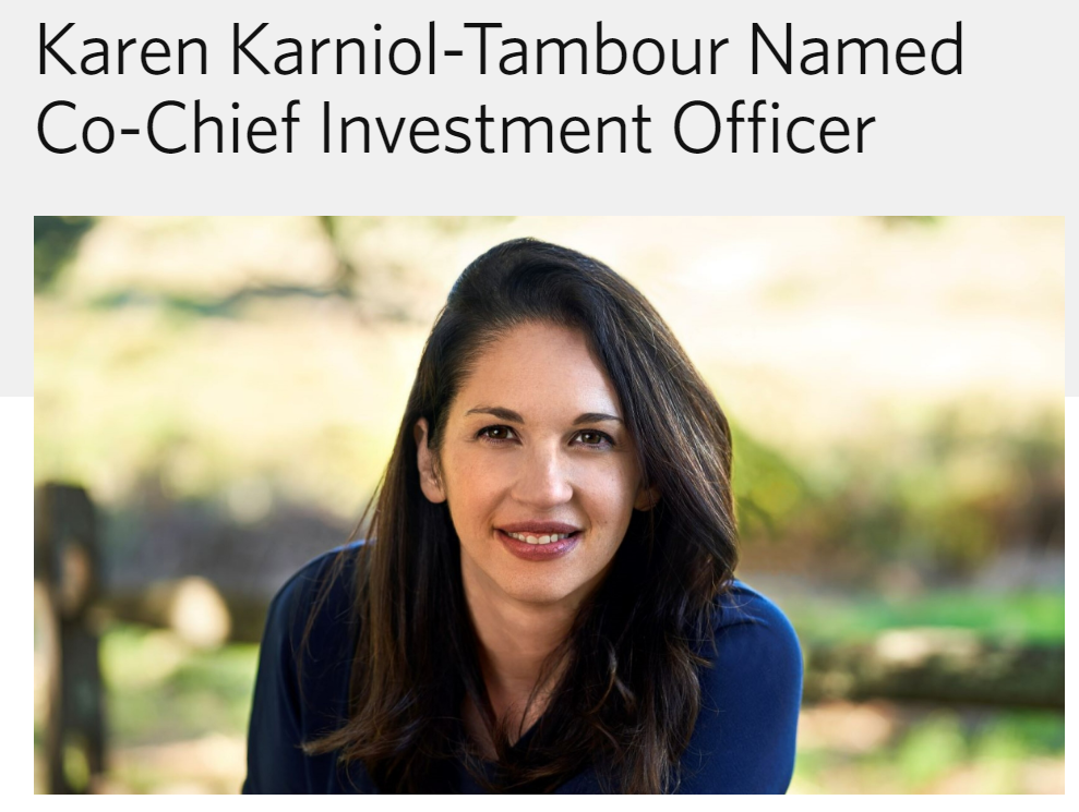 2月2日,由亿万富翁瑞·达利欧创办的全球最大对冲基金桥水公司(Bridgewater Associates)发表声明,称公司正在任命Karen Karniol-Tambour为其第三位联合首席投资官。