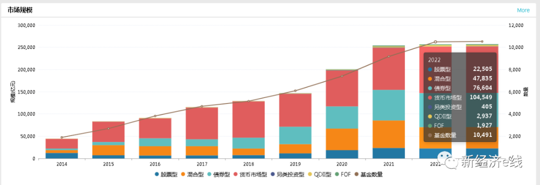 新经济e线获悉,2022年A股市场大幅震荡。截至去年四季度末,权益、转债、固收+产品整体收益全线告负。受此影响,市场风险偏好也随之下降,以货币市场型基金为代表的低风险产品大行其道。