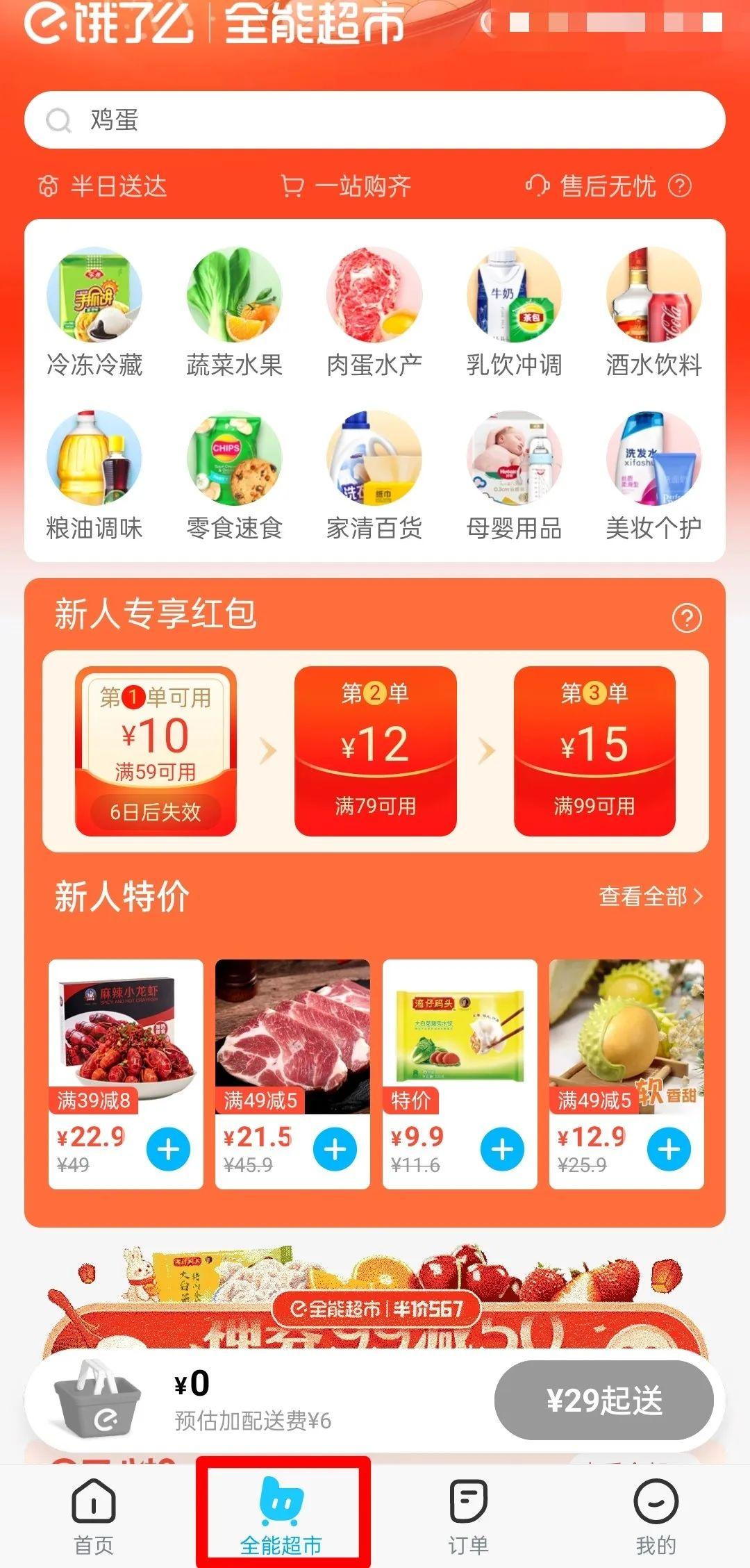去年3月,饿了么上线了“全能超市”业务,采取“仓到家”模式,从本地生鲜仓或经销商仓库发货,半日内配送到消费者手中。背靠阿里这棵大树的饿了么全能超市,刚上线时SKU就已经破万,涵盖商超所有的基本品类。