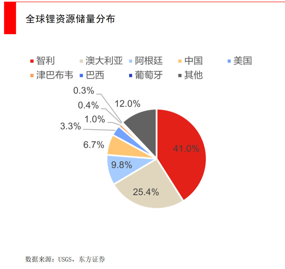针对第一点锂资源问题,核心是全世界锂资源的分布非常不均,并且可开发储量有限。全球的锂矿资源几乎都聚集在“锂三角”(玻利维亚、阿根廷、智利)和澳大利亚,超过一半(53%)的可开发储量位于南美,分布在智利(42%)和阿根廷(10%)等地;澳大利亚的锂资源可开发储量位列第二,约占全球总量的四分之一,而这些国家对开采多少态度各异。