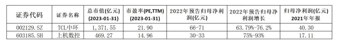 硅片业务纯度较高的TCL中环预计2022年归母净利润可以达到66亿元-71亿元,同比增长63.79%-76.2%;硅片新势力的上机数控转型前主营光伏设备,公司2004年进入光伏板块,2017-2018年公司光伏设备的营收也能达到5-6亿,2019年开始从硅片设备业务逐步介入光伏硅片的生产,公司业务布局主要在硅料、硅片、N型电池,借着2020-2021年光伏板块的高增,上机数控2021年光伏硅片收入达到了107.53亿,估计2022年预告30-33亿的归母净利润中,利润高增背后硅片销售功不可没。