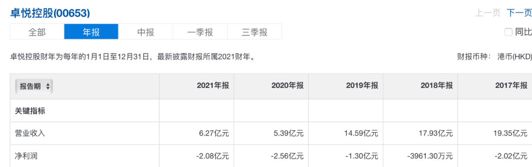 但各种手段的尝试,并没使卓悦走出“泥淖”。多次延缓公布财报的卓悦于2022年6月,正式在港交所停牌,股价停留在0.119元/股。2022年4月,卓悦控股发布了至今为止的最后一份财报,财报显示,2021年,集团营收5.13亿港元——仅有2014年的不到四分之一,那时是卓悦十年里的最高营收点。