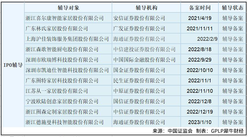 此外,处于IPO辅导阶段的泛家居企业约有12家,其中不乏林氏家居、森歌电器这样的明星企业。
