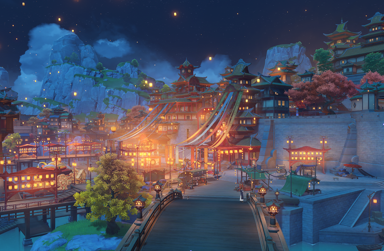 这是游戏《原神》发布的新春短片《鱼灯》中的台词,讲述了一名在城市生活的男青年回到安徽老家,通过和老爸一起制作非物质文化遗产技艺“鱼灯”解开了多年心结的故事。璃月是以古代中国为原型的虚拟地区,海灯节则是以春节和元宵节为根基的虚构节日,现如今,人们既可以在现实中放飞鱼灯,也可以来到游戏中走亲访友、欣赏霄灯了。