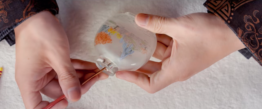 开放世界的重点在于建立一个足够真实可信的世界,以沉浸式的体验为媒,非遗的现代转化便能打开新的思路。今年春节期间,《原神》发布的一系列名为《流光拾遗之旅》的纪录片就是值得思考的案例。制作团队探访各地的非遗传承人,以非遗的形式来展现璃月地区的仙家传说和市井生活。在《仙闻篇·内画》一集中,制作团队拜访了衡水市内画省级传承人王自勇,他在鼻烟壶的内部画下璃月地区的绝云间、琥牢山和奥藏山,也在片中介绍了内画技巧中的“勾、皴、擦”。