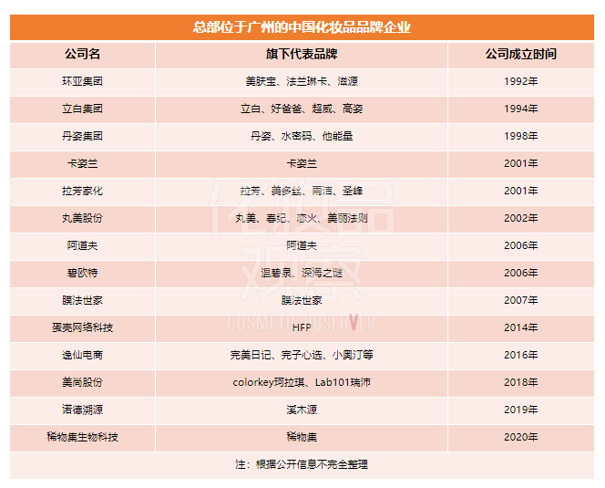 广州,是靠代工崛起的美妆生产中心,在全国美业的地位举足轻重。而在品牌端,也拥有丸美股份、环亚集团、卡姿兰等知名国货美妆企业,也是逸仙电商、HFP等新锐企业的摇篮。