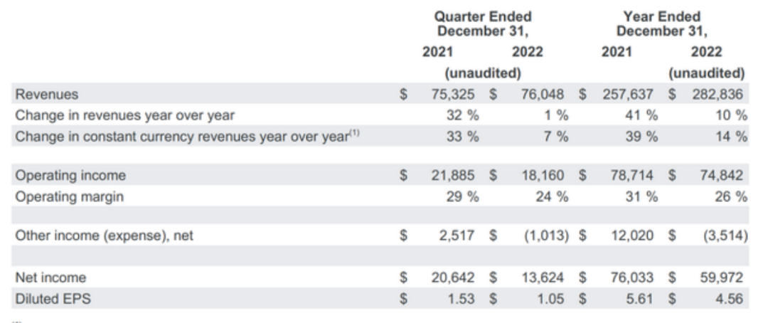 目前,谷歌的大部分收入来自广告业务,今年2月2日,谷歌母公司Alphabet发布2022年四季度财报,季度总营收678.38亿美元,同比下降2.3%。其中,谷歌核心业务广告收入为590.42亿美元,占到总营收的77.58%,同比下降3.6%,此前谷歌仅在2020年二季度出现广告营收同比下滑情况。