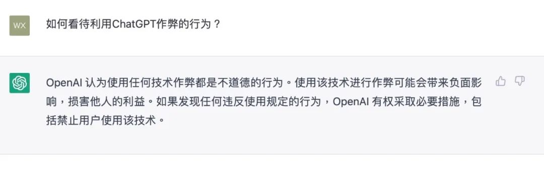 对于利用 ChatGPT 作弊的问题,我们也咨询了一下它自己的意见: