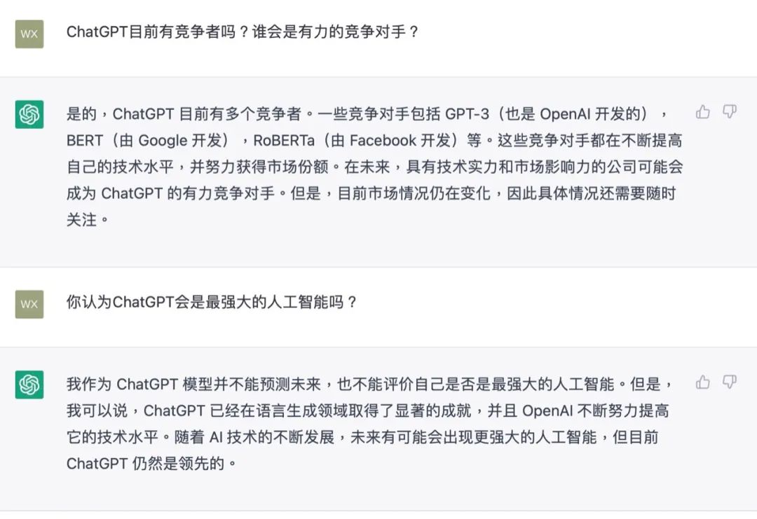 那么面对这些竞争对手,ChatGPT 自己是怎么“想”的呢?